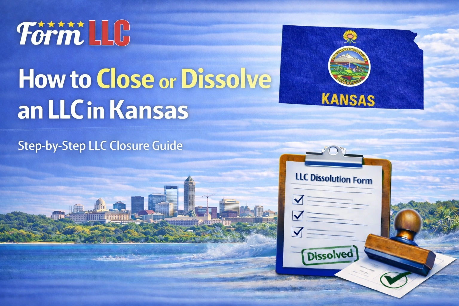 By following the correct process, bringing Kansas Annual Reports and tax matters current, filing Articles of Dissolution (Domestic LLC), and completing any remaining wind-down steps, LLC owners can close their businesses with confidence. If you prefer guided support, FormLLC can help ensure your Kansas LLC is dissolved correctly and without unnecessary delays, penalties, or future compliance issues.