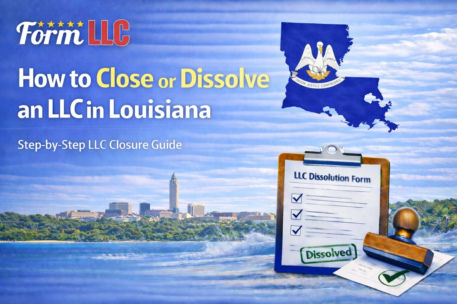 By following the proper dissolution process—bringing Louisiana Annual Reports and tax matters current, completing the required wind-down steps, and filing Articles of Dissolution—LLC owners can close their businesses with confidence and avoid future compliance issues. Louisiana’s low filing fees and typically fast processing make voluntary dissolution straightforward when handled correctly. If you prefer guided assistance, FormLLC can help ensure your Louisiana LLC is dissolved accurately and without unnecessary delays or follow-up complications.